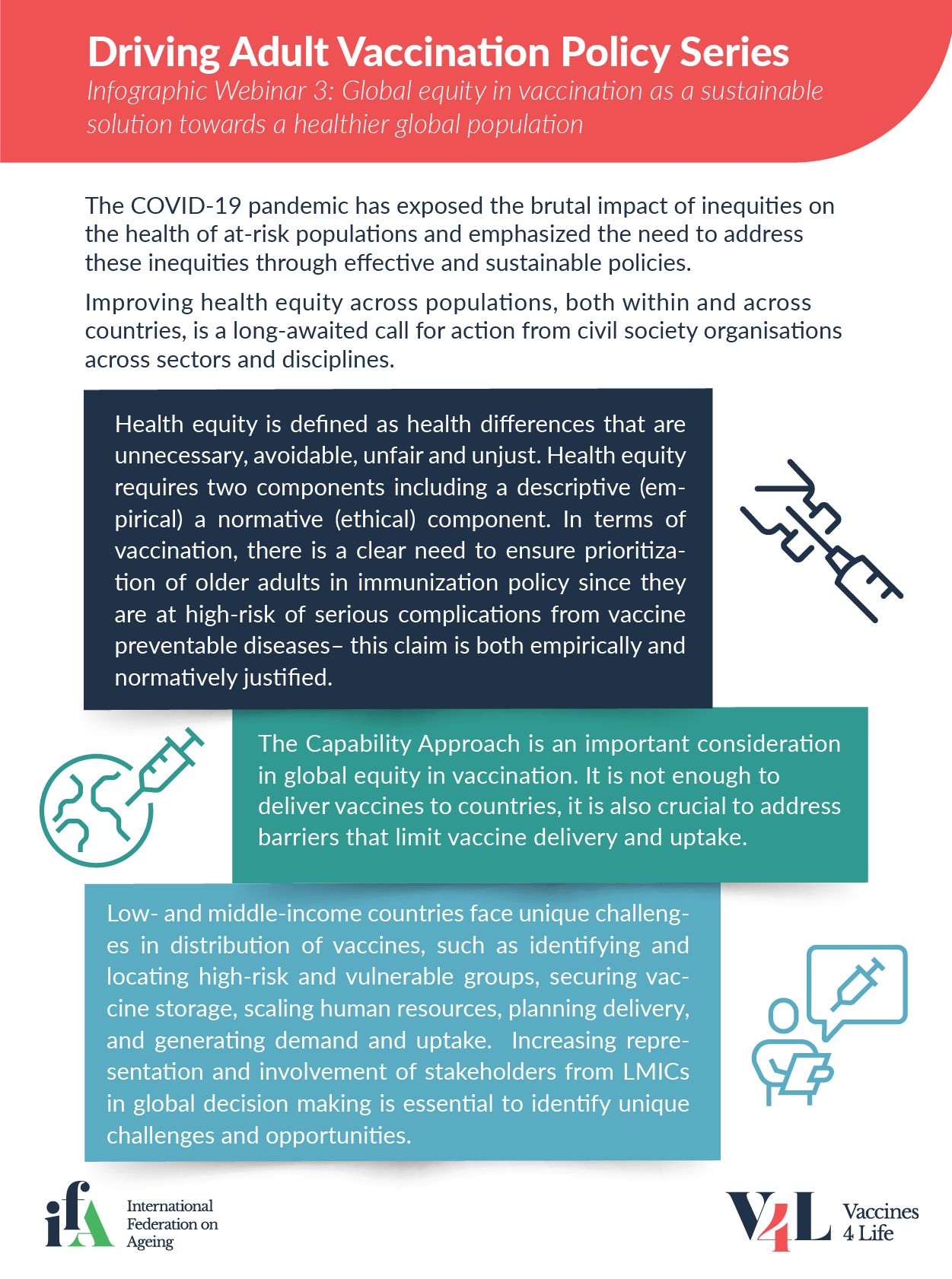To encourage and drive action, the IFA convened a three-part webinar series Driving adult vaccination policy, built around issues for which immunisation policy and/or action will improve and save the lives of potentially millions of older people.
